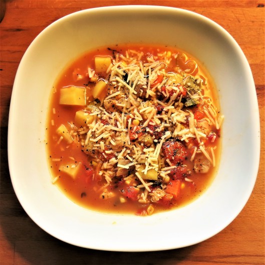 I’ve never been too big a fan of Manhattan-Style Clam Chowder. I prefer creamy soups to tomatoy-brothy soups, but I gotta’ tell you…I like this one. I like this one a lot. It’s loaded with vegetables, chunky and while there’s broth, it has a heap of flavor. And you know, The Goddess is all about flavor.