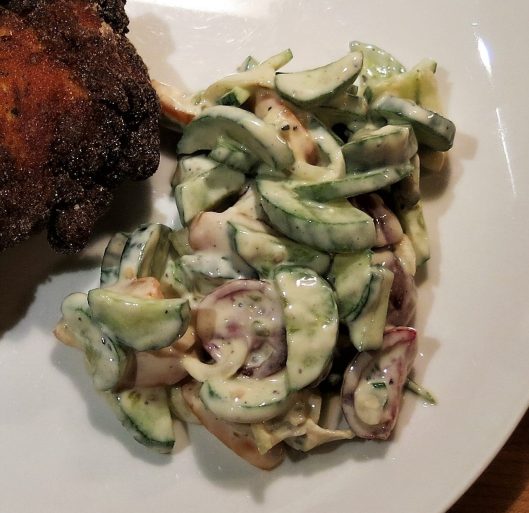 This is one of those salads that just goes together by itself. Okay, so you do have to cut things up, and stir things up, but otherwise, it’s stupid simple. This is good any time of the year, but when your garden patch is bursting with goodness, this is positively stellar.