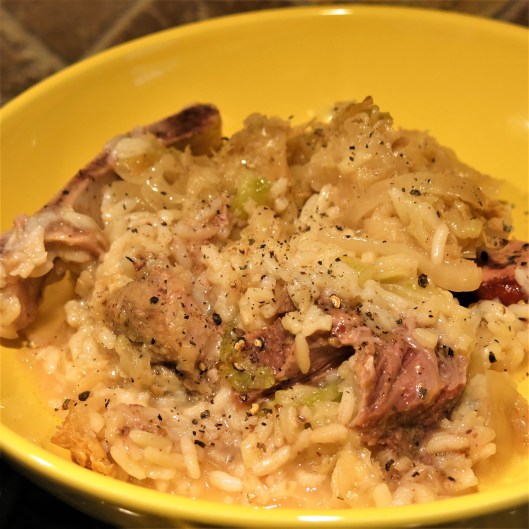 This is a perfect dish for a crowd, or a busy week. You can make it on the weekend and just reheat it all…week…long! It gets better each time you reheat it. I swear it does. This is peasant food at its very best…layers of cabbage, sauerkraut, onions, rice, and pork, slow cooked for hours…oh, yum!