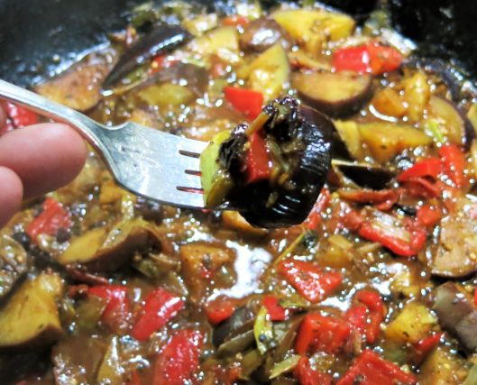 Caponata is incredibly delicious. It is the perfect end-of-the-summer-garden dish to prepare. This version “twisted” or “evolved”, as I was searching through the garden. Only it’s roots are traditional. Then it wanders. And it wanders into pretty, delicious territory.